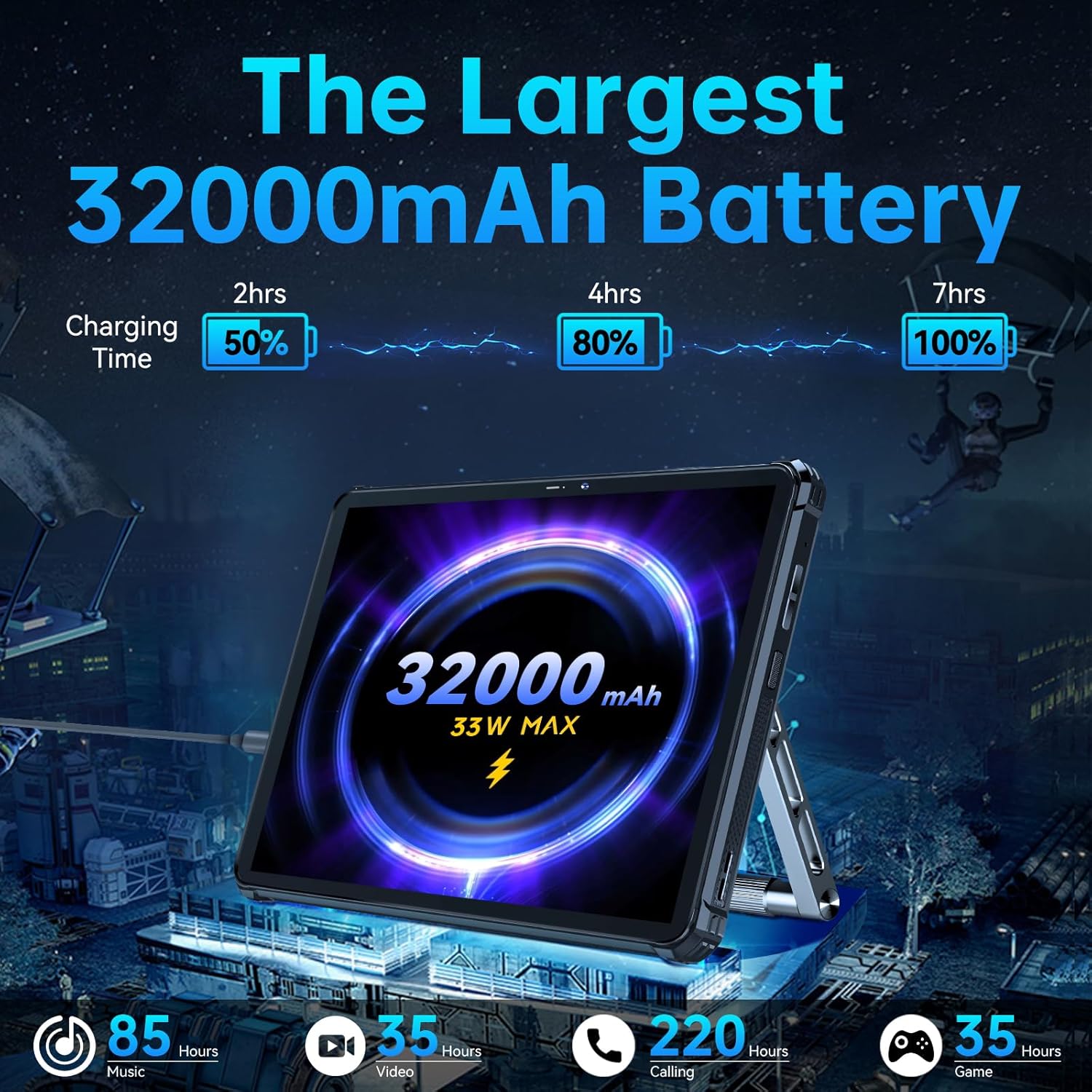- Une batterie à l'autonomie record : 32000 mAh (180 jours en veille) + Charge rapide 33W + OTG.
